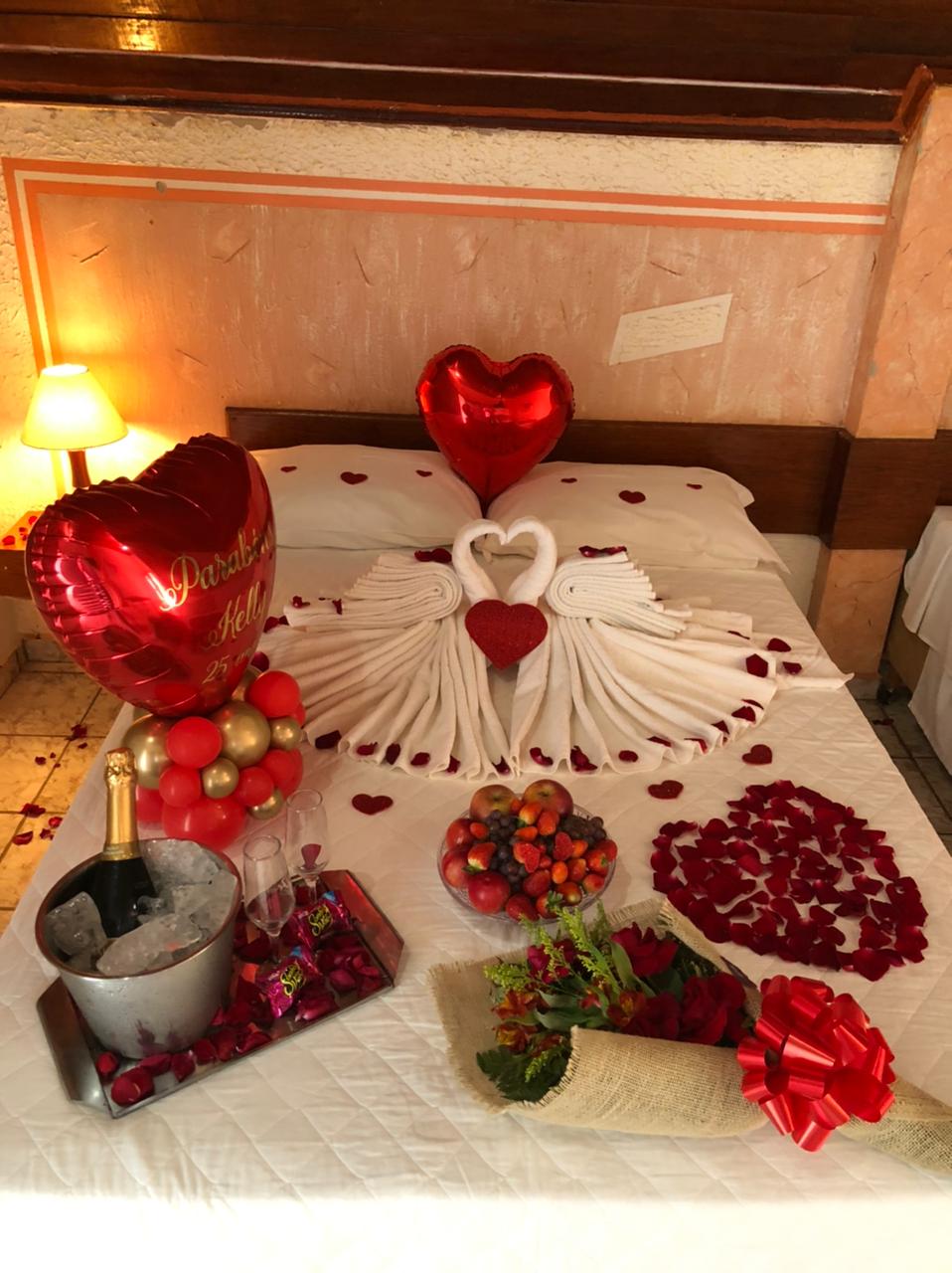 • Decoração com pétalas de rosas (buquê de flores não é incluso);